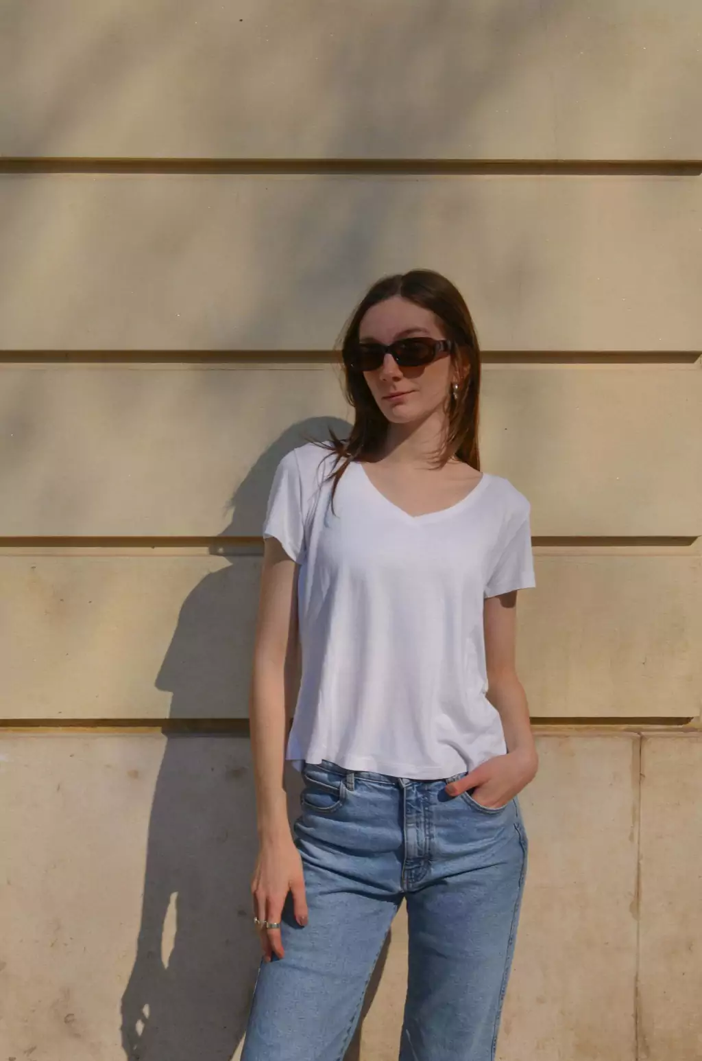 Remera de calce básico, manga corta y escote en V. Tejido de viscosa muy suave al tacto y con caída. Una remera básica con el toque de ese escote que alarga, estiliza, y te destaca.